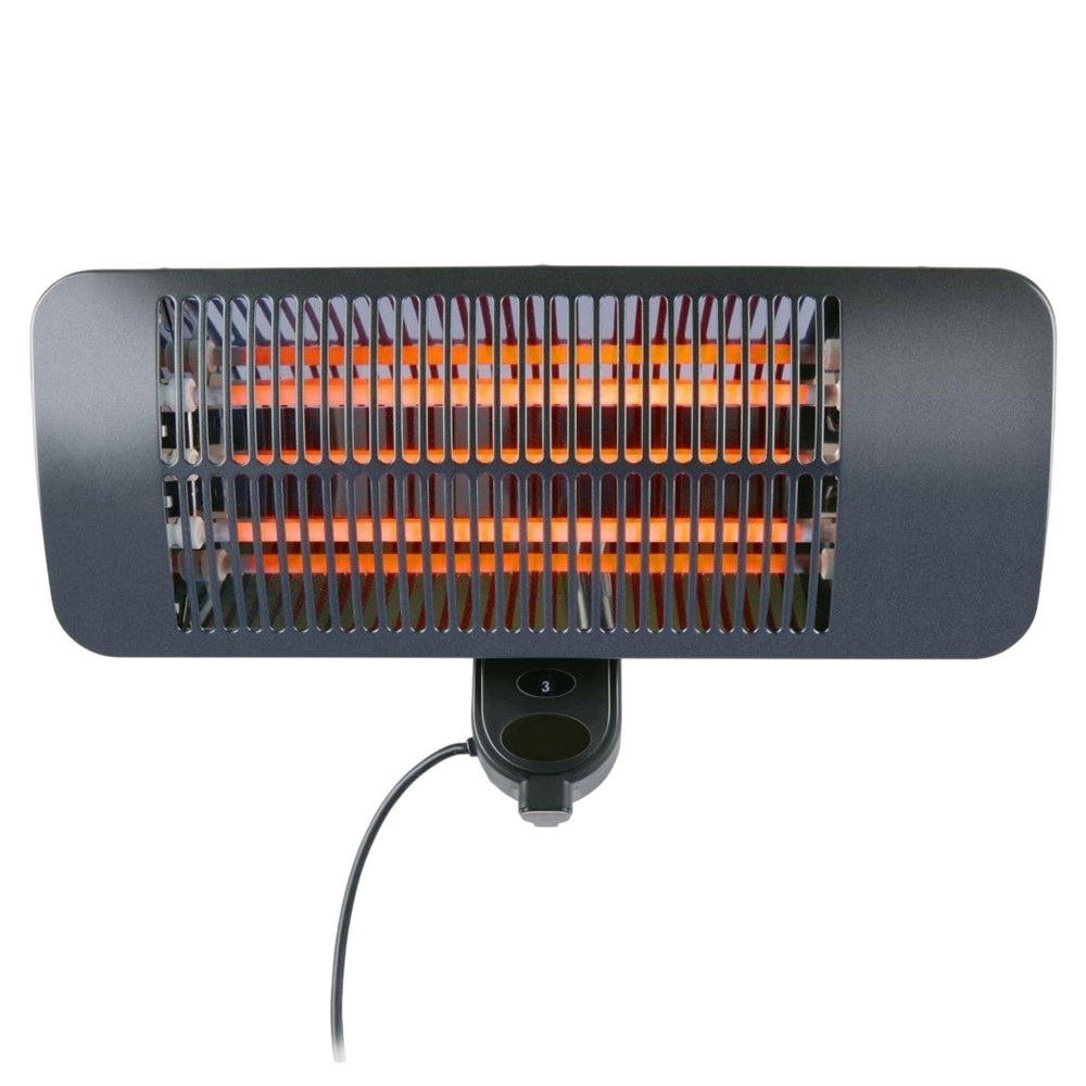 The alpina wall-mounted patio heater is a practical and efficient infrared heater for outdoor spaces such as terraces, balconies, and patios. With three adjustable heat settings (650W, 1300W, and 2000W), this infrared heater always provides the perfect warmth. The powerful infrared panel with a quartz heating tube ensures fast and even heat distribution. Thanks to its IP34 rating, this patio heater is splashproof and suitable for use in all weather conditions. Wall mounting saves space and creates a safe and comfortable heating solution. This patio heater is ideal for those who want to enjoy a pleasantly warm outdoor space all year round.