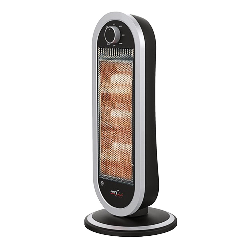 Very high yield for an optimization of energy consumption, with an extremely accurate design. Three independent halogen heating elements and 3 selectable power levels (400/800/1200w) with rotation function that can be deactivated and anti-tipping protection. Power supply: 220-240v ~ 50/60hz. dimension 30x30x72 cm