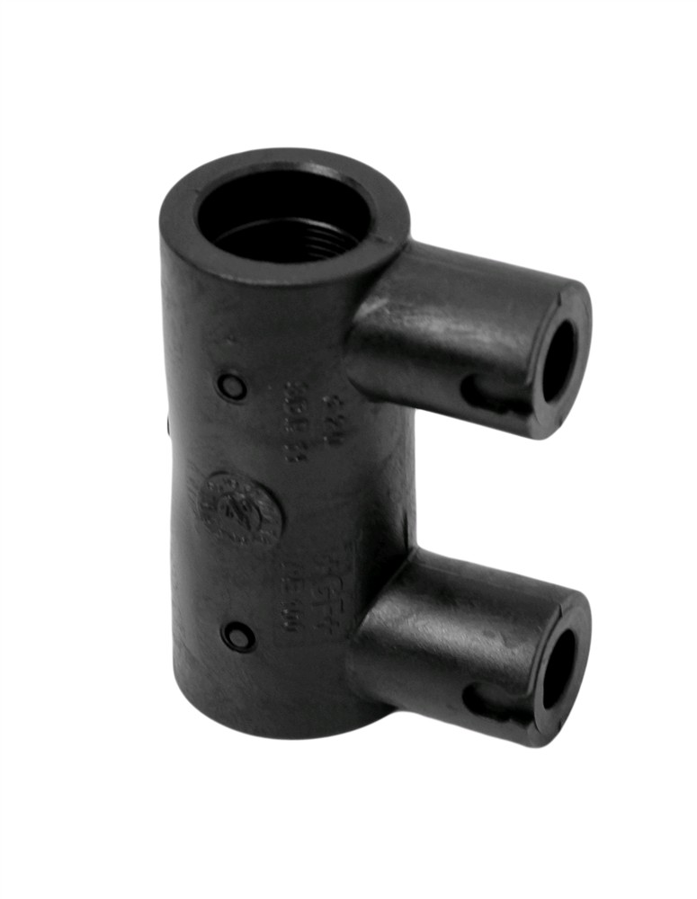 Electrocoupler HDPE 20mm widely used today in the European market for joining the pipes in the water supply lines, natural gas lines and sanitary discharges. This electrocoupler mounted by the electro-fusion method. Electrocoupler enables joining of HDPE pipe, different fittings HDPE by each other and network. For welding elecrocupling using a welding machinery which supplies power to control reziztencën of electrocupler, this resistance generates heat needed the union by merging the inside part of electrocoupler and exterior of HDPE pipe. Manufactured with European standards, resistant to corrosive materials, high resistance to deformation of land and resistant to pressure up to 10 Bar.