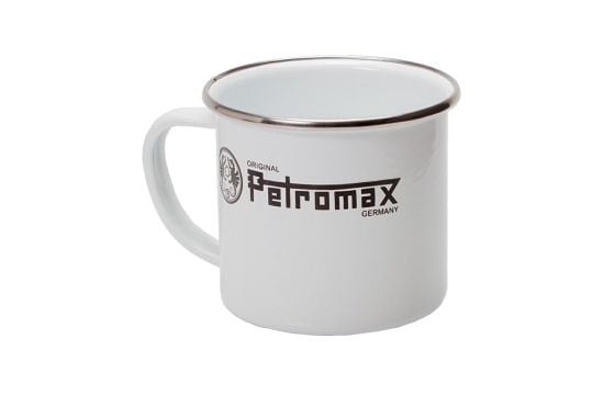 Petromax cup, enameled. Suitable for coffee, tea. The combination of glass and steel results in a strong and easy to clean material, it is not only heat resistant but also lightweight. The combustible surface is resistant to scratches and cuts. Used for camping, by the fire or at home.