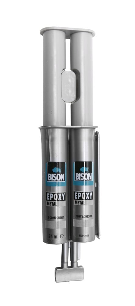 Metal coloured, two-part epoxy adhesive Ideal for repairs to metal objects which need to resist extreme conditions (forces, vibrations, (sea) water, heavy strains). Also suitable for filling small holes in radiators. Bonds metal (steel, aluminium, iron), stone, wood, concrete and various synthetics. Not suitable for Polyethylene (PE), Polypropylene (PP), P.T.F.E. and silicone rubber. Temperature resistant from -40°C to +60°C. Apply only at temperatures between 5°C and 35°C. Surface should be free of dust and grease