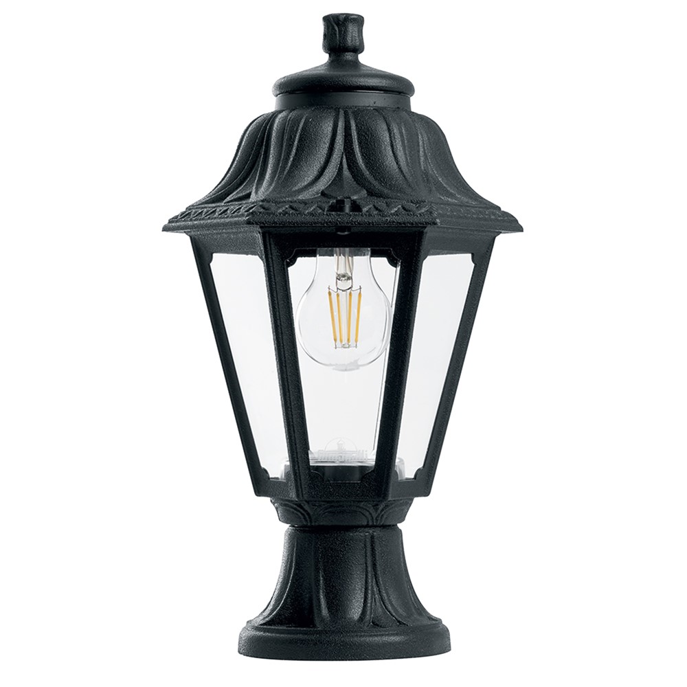 Exterior post light, Fumagalli, black, clear diffusor, 1 x E27, D13 x H38.5 cm. Add beauty, elegance and functionality to your outdoor spaces, for more pleasant evening with friends and family in your gardens or terraces lighting is an unsubstituted element and an excellent choice would be the resine radiant with a fin design and stylish.