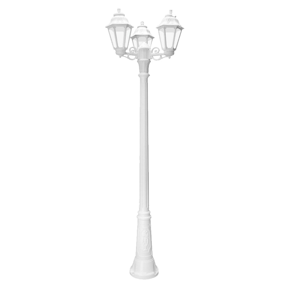 Exterior post light, Fumagalli, white, clear diffusor, 2 x E27, 209 cm. Add beauty, elegance and functionality to your outdoor spaces, for more pleasant evening with friends and family in your gardens or terraces lighting is an unsubstituted element and an excellent choice would be the resine radiant with a fin design and stylish.