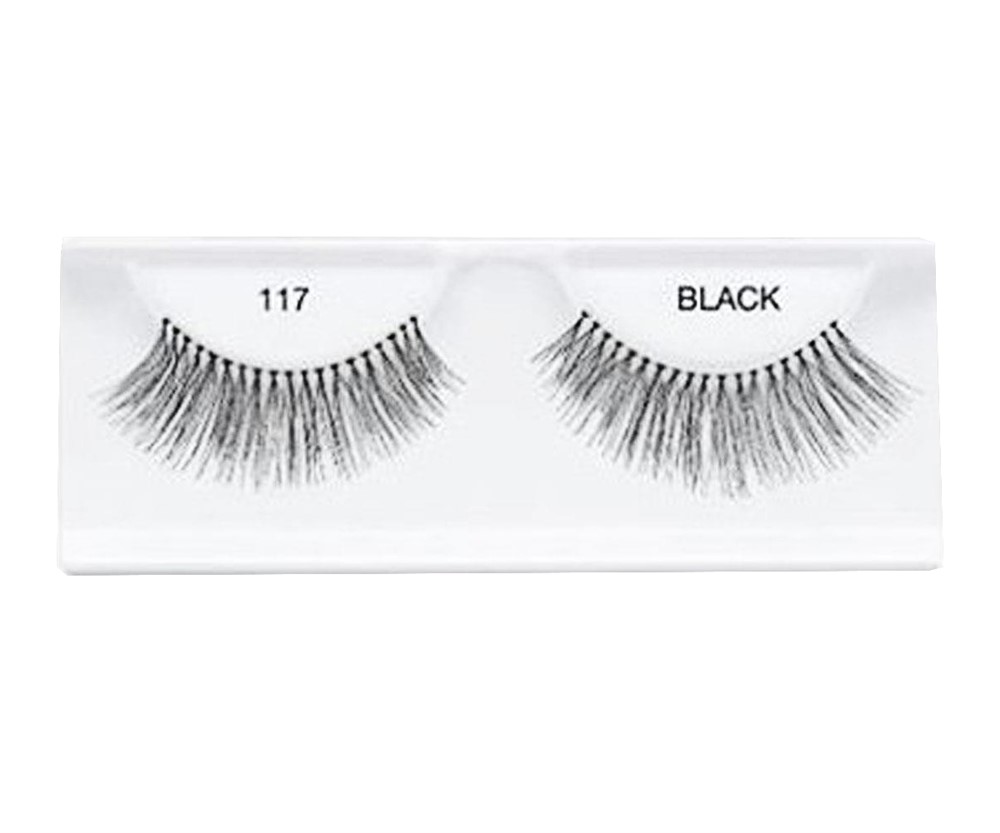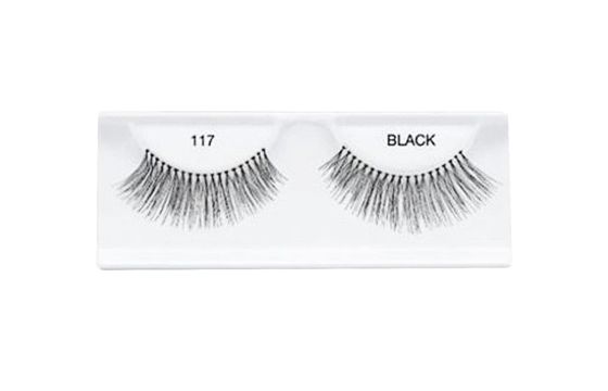 False eyelashes, made of 100% human hair, in black color. The package contains 2 pieces. Eyelashes can be easily adjusted to the desired size. The constituent material is gentle to the skin and does not cause irritation. This product is suitable for use with eyelash glue (code 789399).