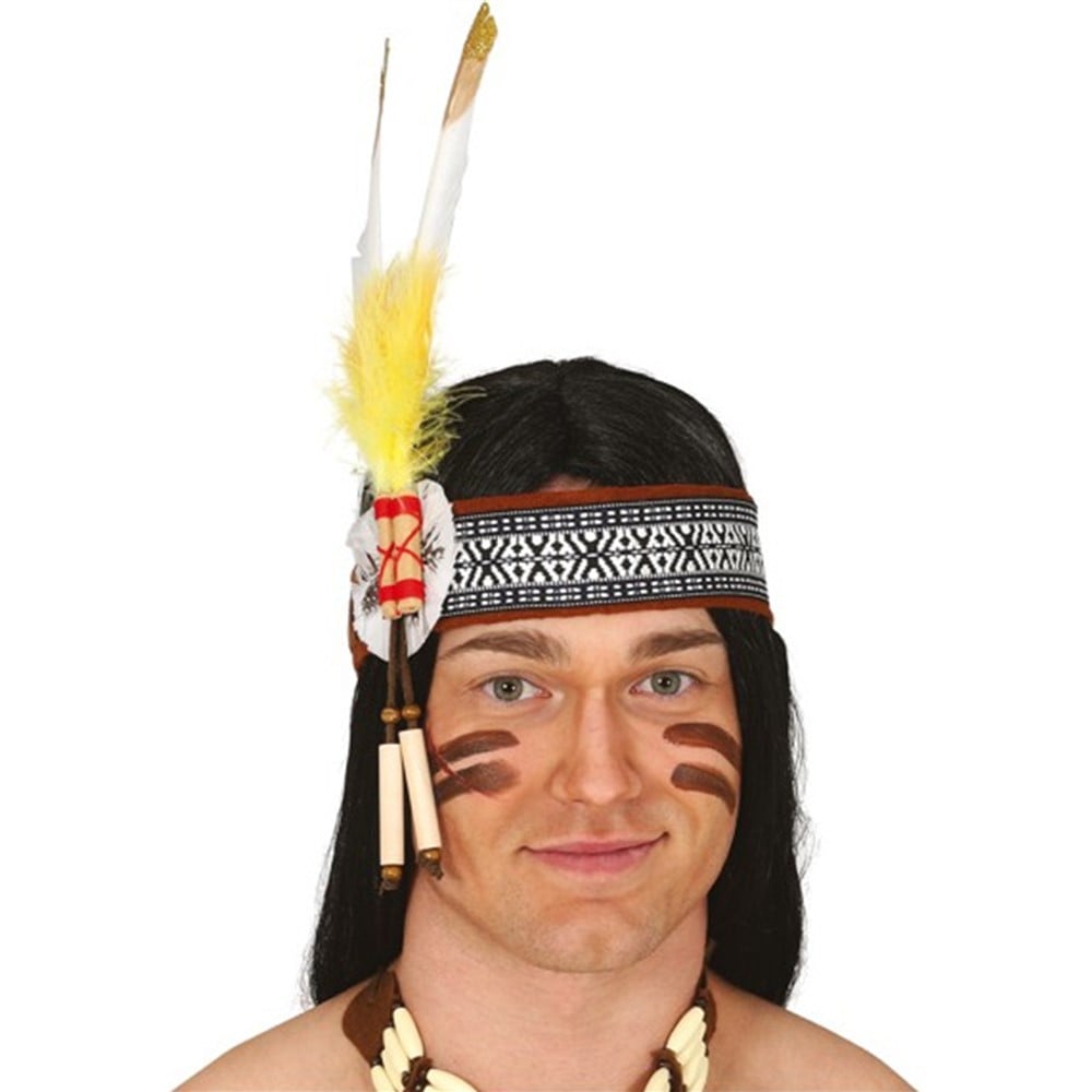 Around Indian head, with feather of textile material. To complement the theme of the Indians. The circle is set by both men and women over the age of 6, its size is standard.