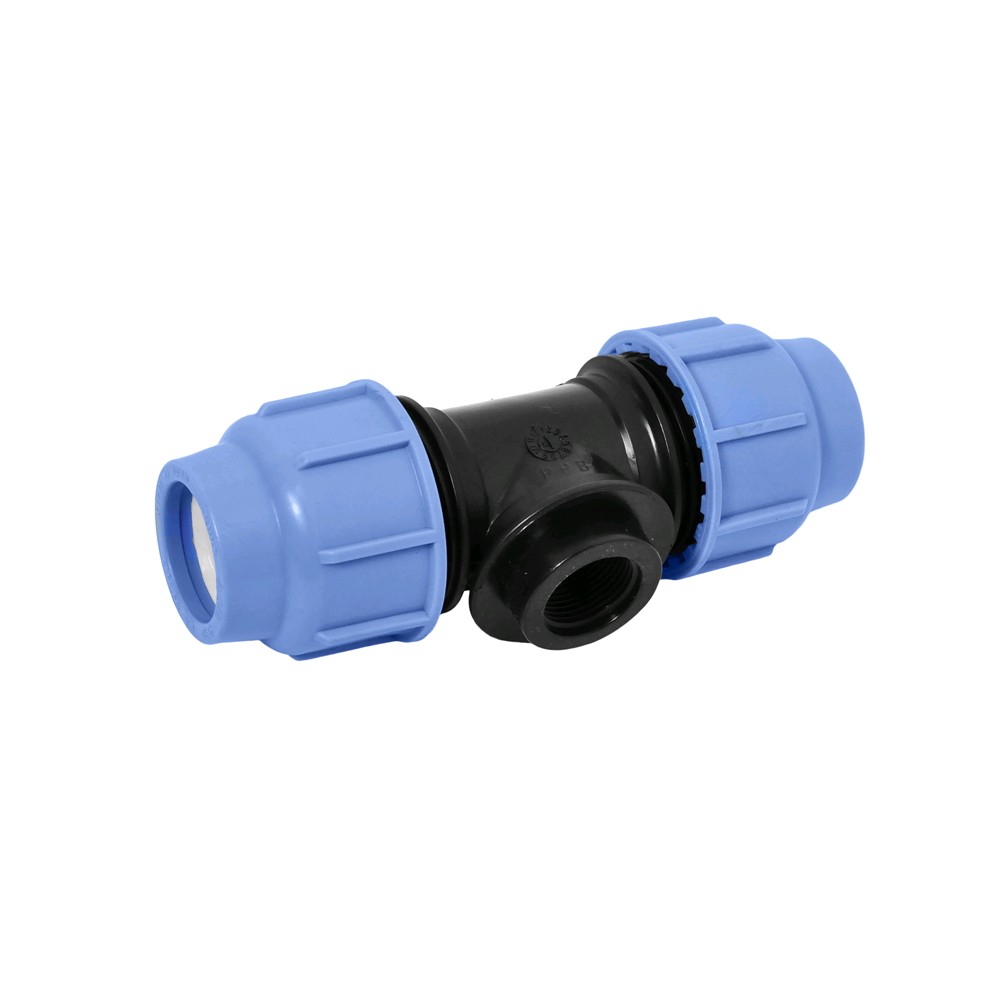 Tee with faucet of PP 32x3/4"x32 mm female with angle 90°. Used to installations angular water supply infrastructure lines, in irrigation and agricul, etc. This tee enables network branching 90° angle. This tee connect pipe Ø 32 with other fittings by fillet, for joining the fillet recommend tu use teflon whiles pipe connect whith tee in mechanically with faucet. Manufactured with European standards, resistant to corrosive materials designed to withstand pressure up to 16 Bar.