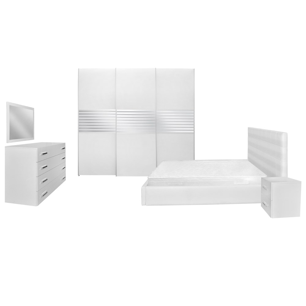 Bedroom Set is a great, eye catching set for your room. This Bedroom Set offers a stylish storage solution for those working to a budget. This bedroom set has been constructed from melamin has a walnut with cream finish. This Bedroom Set consists of 4 Drawers Chest, 2 Night Table, Bed Frame and 3 sliding Door Wardrobe. Bedroom Set Wardrobe has six large doors, will open up to a spacious interior that will allow you to easily store and protect your shirts, jackets and other clothing. Bedroom Set Drawer Chest has 2- main drawers for storing your personal items, and tabletop can be used for placing your TV or home ornaments upon, and is supported on sturdy legs. Bedroom Set Night Table will serve as a handy pedestal for a lamp and alarm clock whilst the additional drawer space will prove invaluable when it comes to alleviating clutter around the bed. Bedroom Set Bed Frame is low foot and high headboards with slatted base, offering a good mixture of firm support and sumptuous. Note: Matress support is not included in wardrobe set.