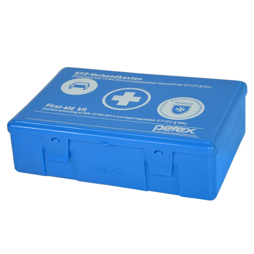 First-aid kit Petex (content according to DIN 13164). Box contain :Disponible gloves. adhesive tape 2.5cm x 5m, emergency blanket 160cm x 210 cm, triangular bandage 136cm x 96cm x 96cm, elastic conforming bandage 5 pc, cleasing wipe for uninjured skin 2 pc, burn dressing 600 x 800mm 2 pc, Band- aid set 14 pc, standart dressing 60mmx80mm- 80mm x 100 mm- 80mm x 100 mm- 100mm x 120mm, wound compress 10cm x 10cm 3 pc, scissors 1 pc.