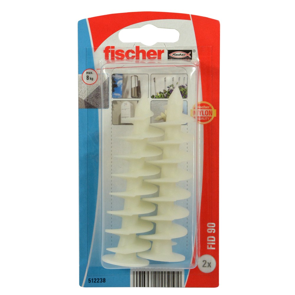 The fischer insulation fixing FID is a fixing for mounting lightweight components in plastered and un-plastered insulation panels made of polystyrene and polyurethane. The fischer FID can be set either by hand, or with a cordless screwdriver. The special spiral thread taps itself in the insulating board. Components such as house numbers, motion sensors, or information carriers can be mounted using a 4.5 mm screw.