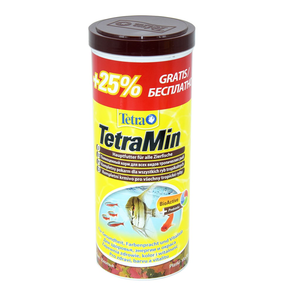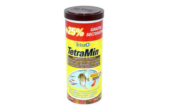 Fish food, Tetra Min Flakes, 1 L. TetraMin Tropical Flakes have been improved with the fishkeeper's success in mind and bio active formula. Our upgraded formula is nutritionally balanced to support health. TetraMin Tropical Flakes continue to offer a complete diet with a clear water formula that's easier to digest, leaving less waste in the tank. or health, color, and vitality