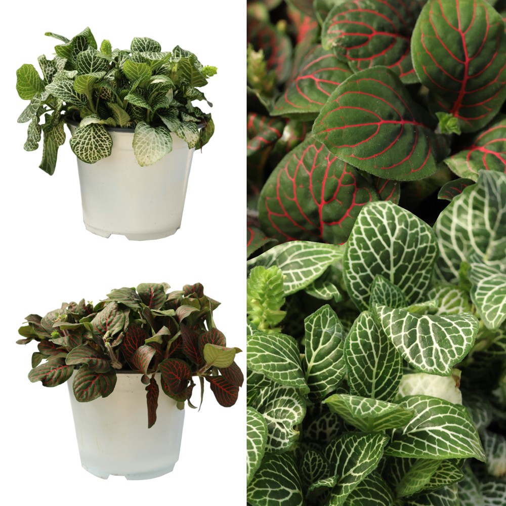 Fittonia originates in a tropical environment, it thrives in an environment with high humidity. The fittonia plant likes moist, well-drained soil, but not too wet. Water moderately and let them dry out between waterings. The plant tolerates light to shade conditions, but will really thrive in bright, indirect light. Low light exposure will cause these plants to turn green, losing the vibrant splashes of vein color. The plants should be placed in a warm area, avoiding currents that will shock the plant as well as water that is too cold or hot. Feed as recommended for tropical houseplants according to our fertilizer brand's directions.