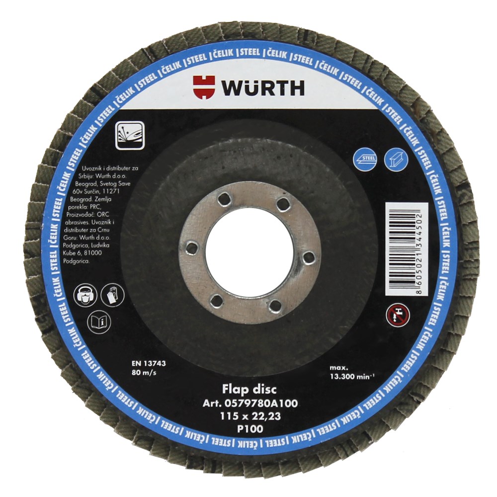 You're reviewing:Flap wheel, Wurth, 115x22 mm, Grit 100, scraper