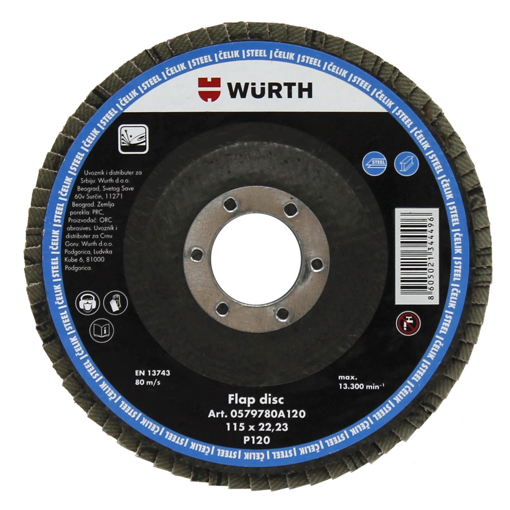 You're reviewing:Flap wheel, Wurth, 115x22 mm, Grit 120, scraper