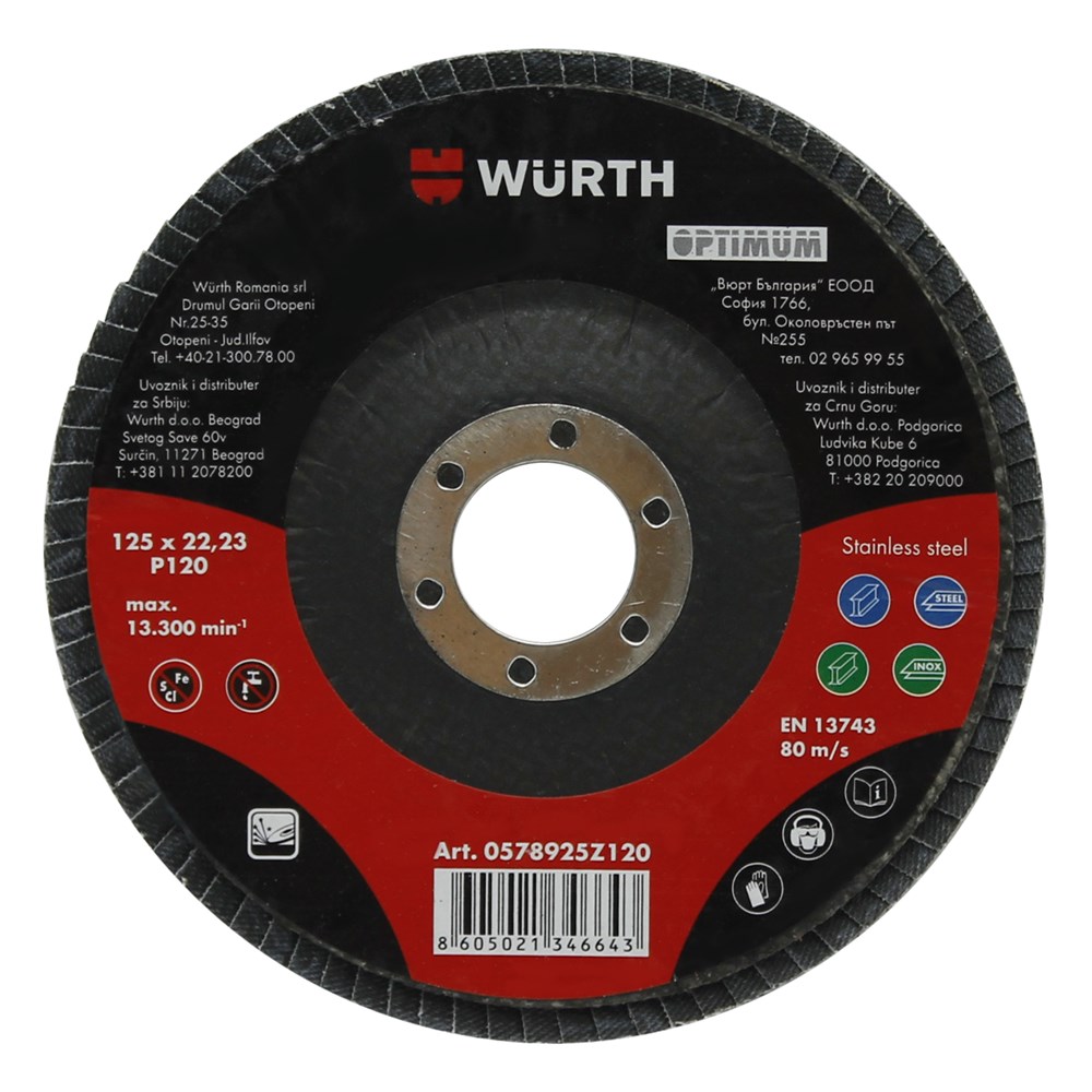 You're reviewing:Flap wheel, Wurth, Optimum, 125 mm, Grit 120, 84 sheet