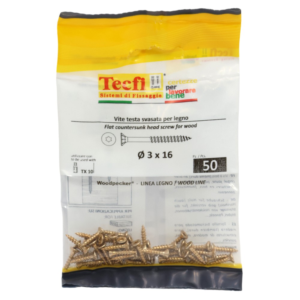 You're reviewing:Flat CSK head torx recess chipboard screw,yellow zp, Ø3x16mm, Bag 50