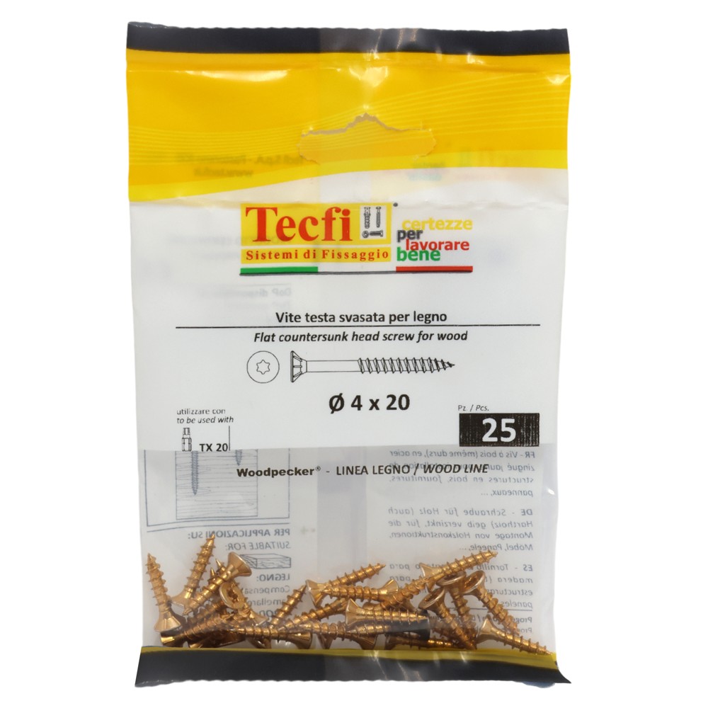 You're reviewing:Flat CSK head torx recess chipboard screw,yellow zp, Ø4x20mm, Bag 25
