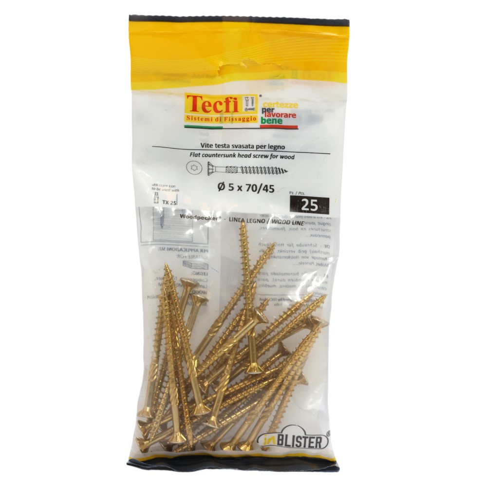 You're reviewing:Flat CSK head torx recess chipboard screw,yellow zp, Ø5x70/45mm, Bag 25