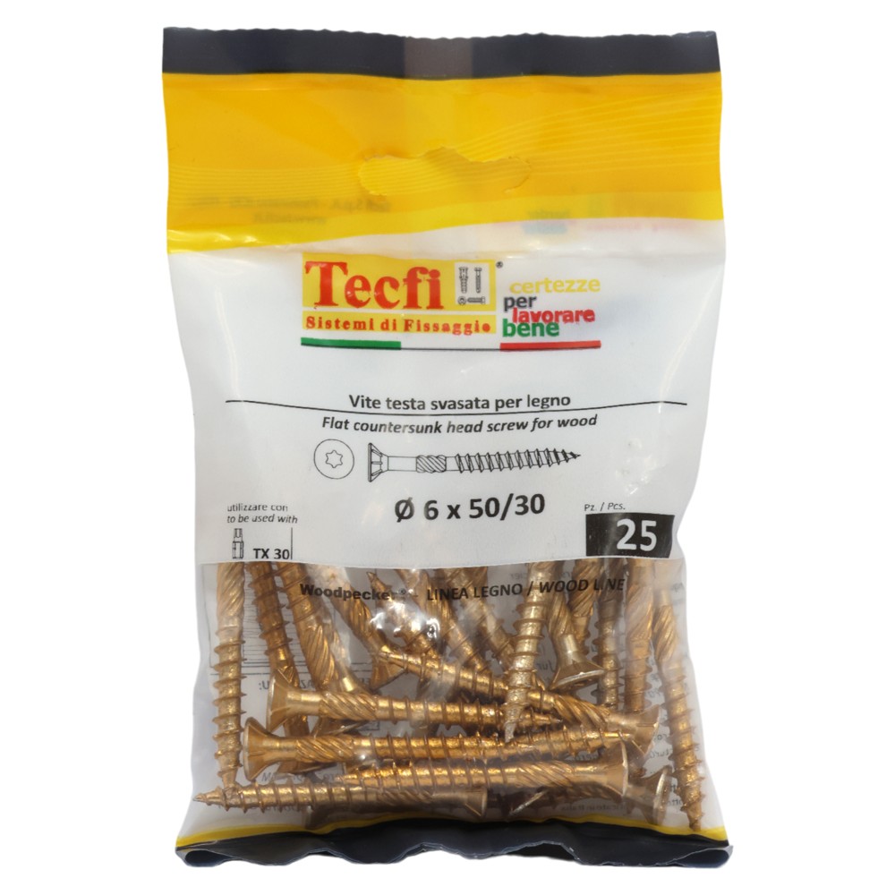 You're reviewing:Flat CSK head torx recess chipboard screw,yellow zp, Ø6x50/30mm, Bag 25