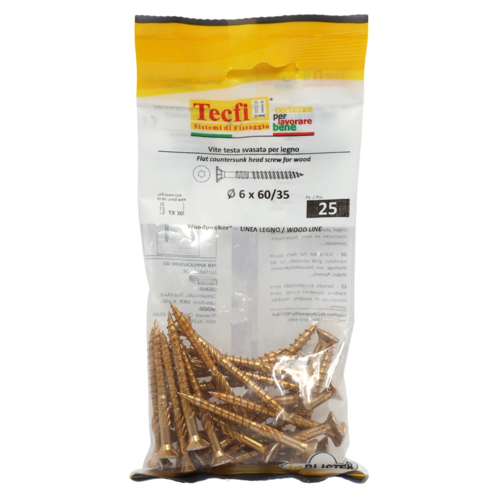 You're reviewing:Flat CSK head torx recess chipboard screw,yellow zp, Ø6x60/35mm, Bag 25