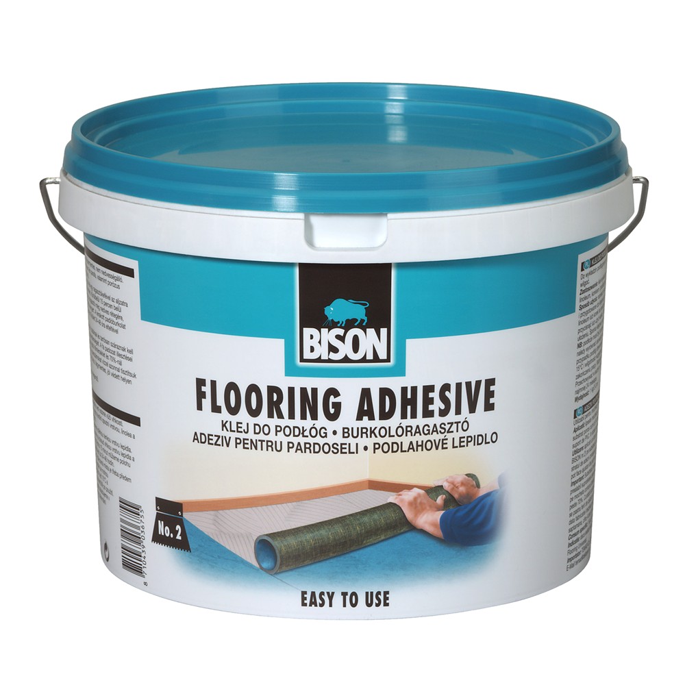 Apply the adhesive evenly to the surface (cleaned, dry and degreased beforehand) using a Bison No. 2 notched trowel.
