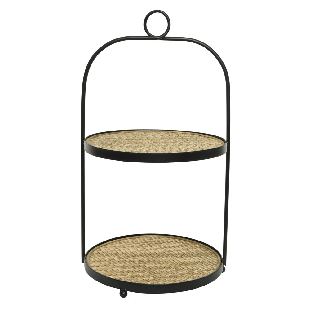 Two floor etagere tray, made of metal and wood in natural color and 32x28x52cm in dimensions. Used in every holiday occasion to serve your friends sweets, coffee or various foods.