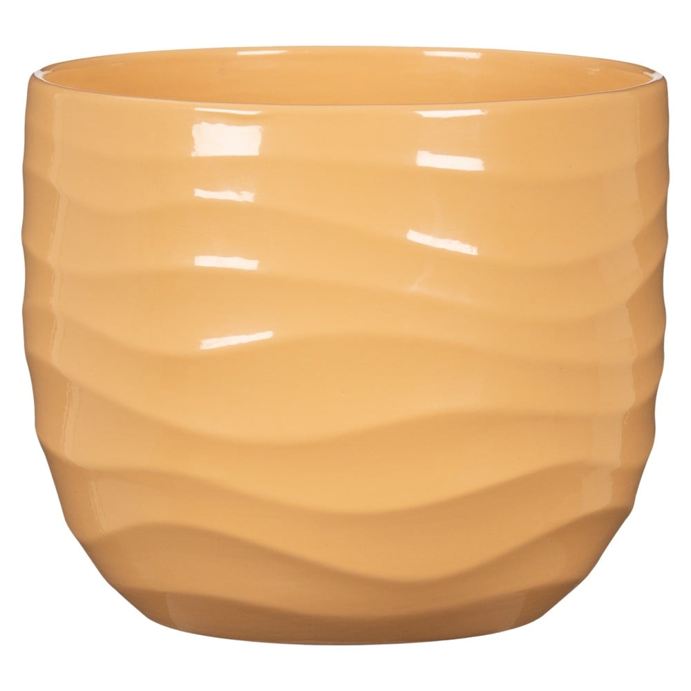 Flower pot, ceramic, yellow beach, Dia.14.8xH12.7 cm