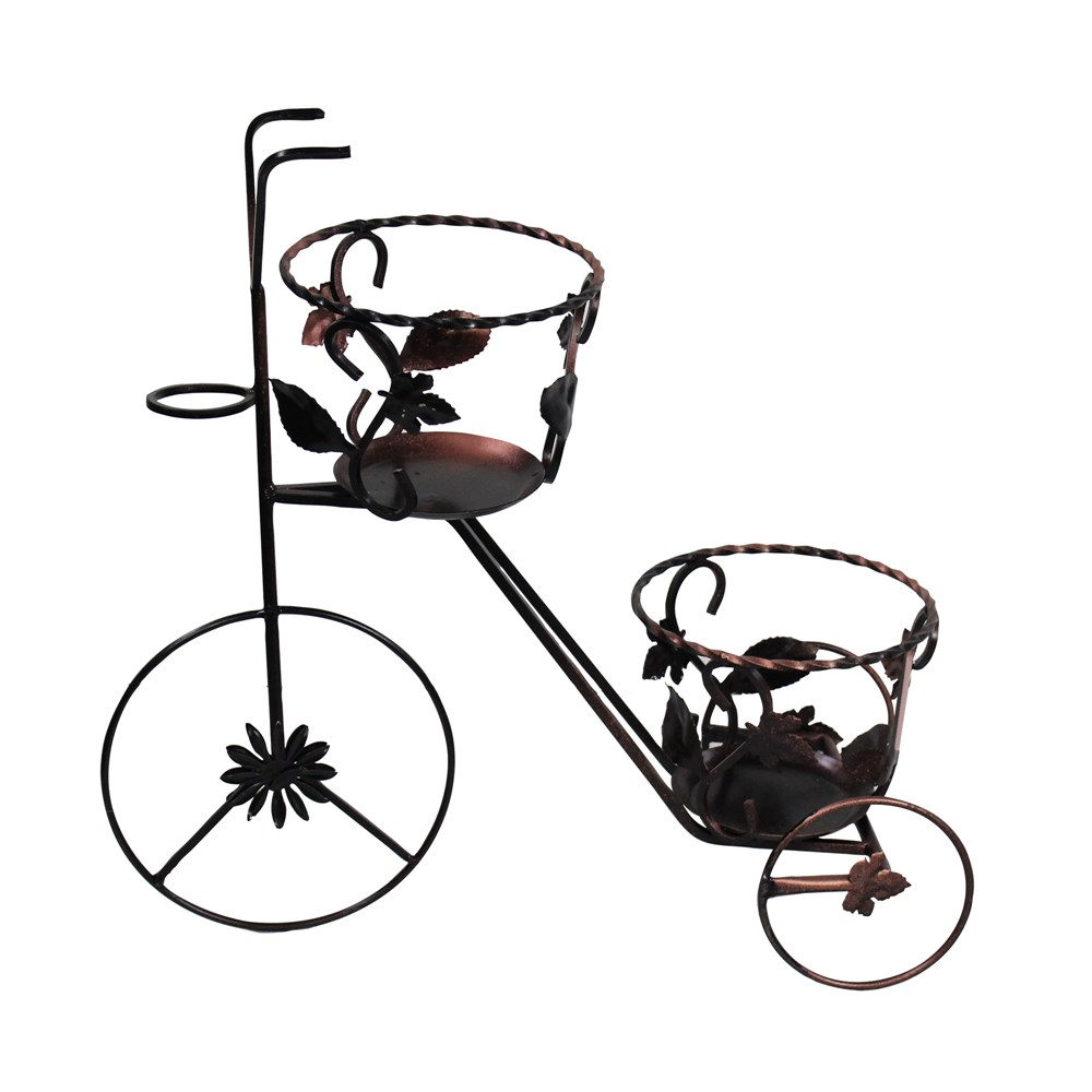 Flower pot holder (2 pots), metallic, antic brass, 63x25xH58 cm