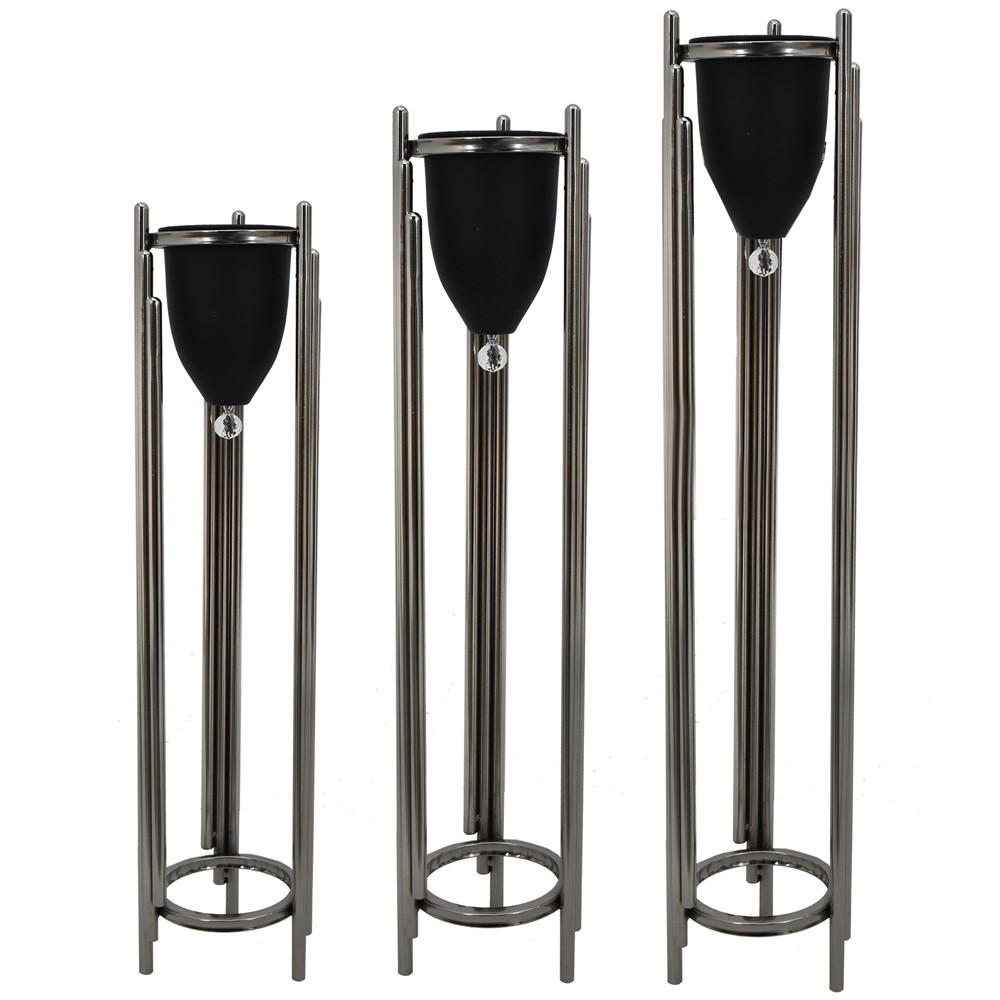 Modern flower pot holder set, suitable for any type of decor and can match variety of plants or flower. The clean and simple lines, in metallic material and silver color will add a touch of character as well as will fit weel with the most of the home decor and furniture. They can be combined with a variety of plants, adding elements of sophistication to your bedroom, dining room, balcony or office.