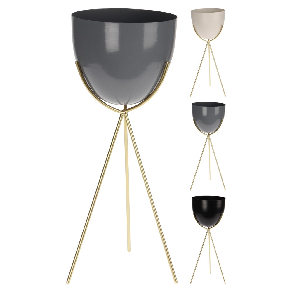 Flower pot, casing on a stand in a modern design on 3 metal legs. The flower pot will be an interesting decoration for the living room, bedroom in front of the front door of buildings. This type of flower stand will be a beautiful decoration in restaurants or cafes.