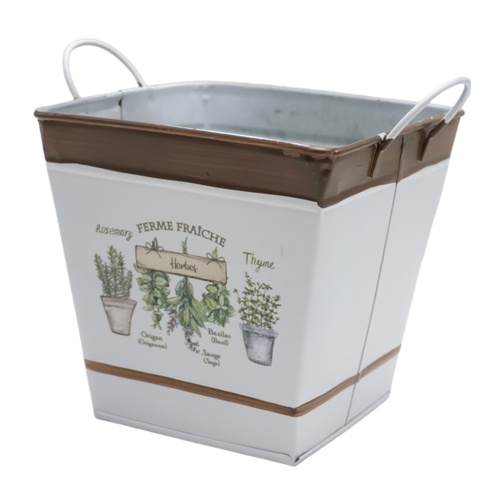 Flower pot, metal, white/brown, 16x16x15.5 cm