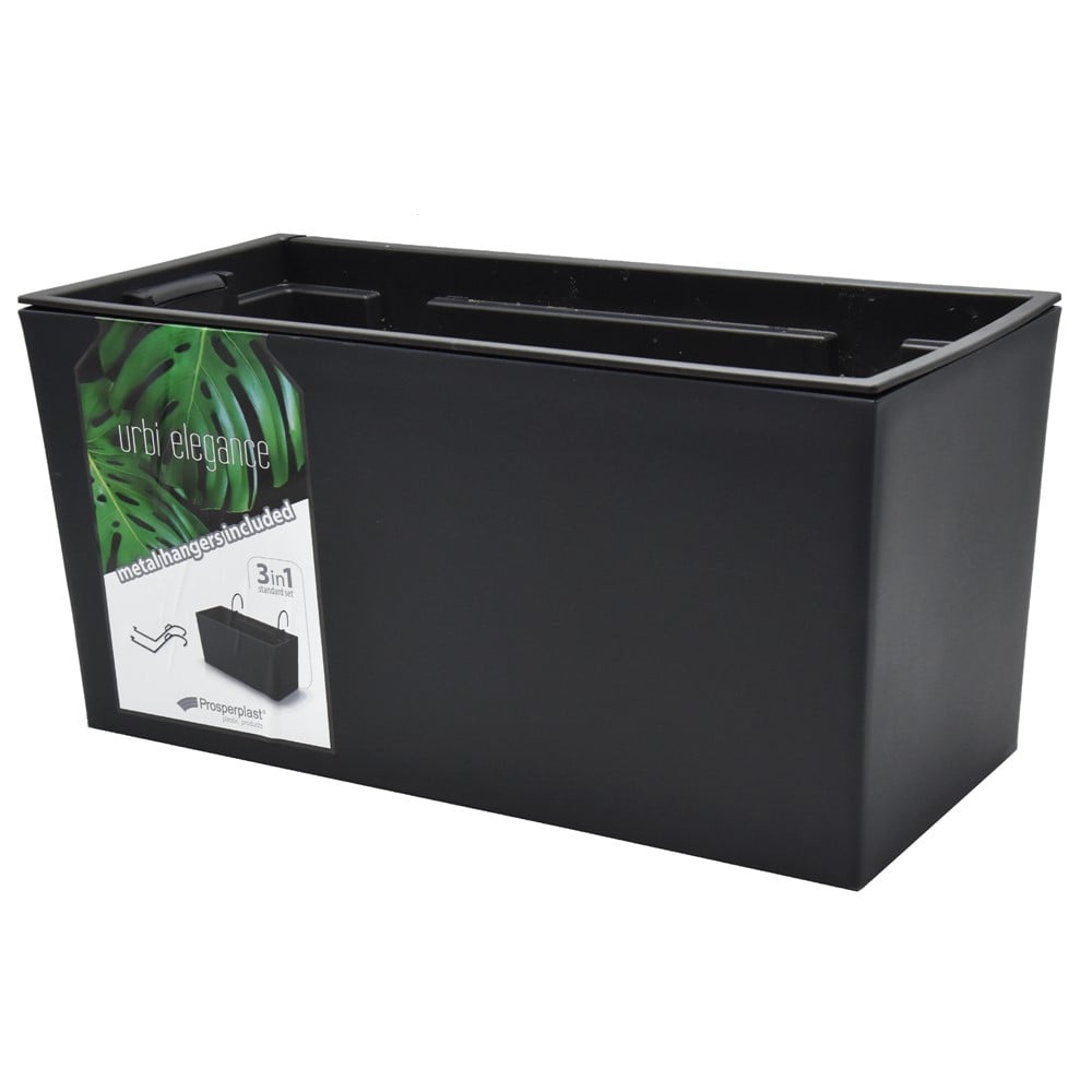 You're reviewing:Flower pot, rectangular, railing, Urbi Case W, plastic, anthracite, no saucer, overflow hole & plug, 39.5x18.5xH19.5 cm