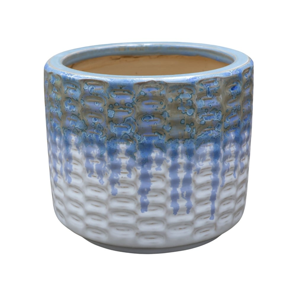 Flower pot, S, ceramic, white/blue, Ø21xH18 cm