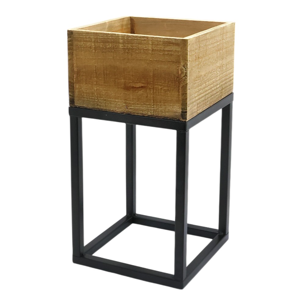 Flower pot, S, metal/wooden, brown/black, 17xH34 cm