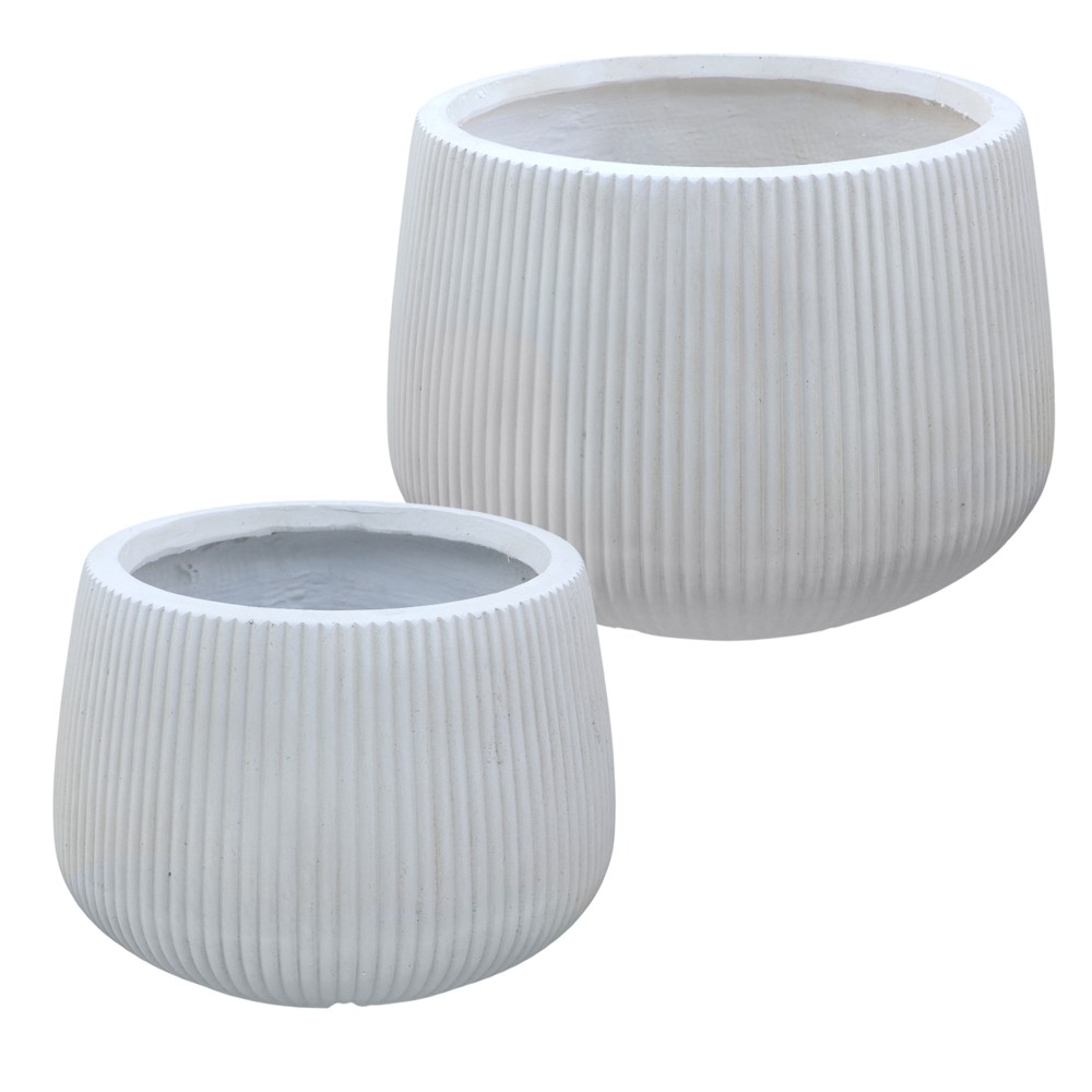 Bring freshness and natural elegance to your space with this set of 2 flower vases, designed to create harmony and style in any setting. Crafted from high-quality clay and finished in a clean white color, these vases convey a sense of calm, light, and refinement, blending effortlessly with any decor style. The set includes two different sizes, 32.5x32.5xH22.5 cm and 46x46xH31 cm, which combine beautifully to create an eye-catching visual composition. Perfect for decorative flowers, green plants, or natural arrangements, these vases are suitable for both indoor and outdoor spaces.