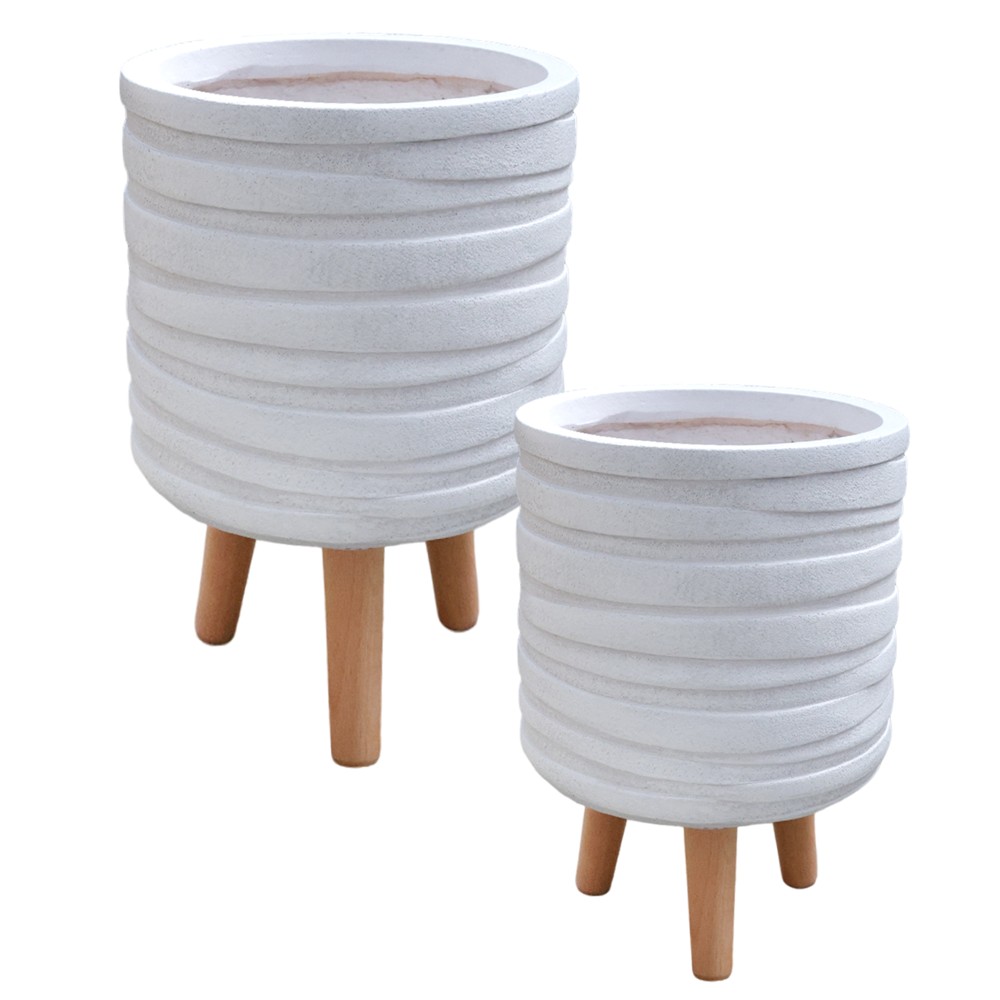 This set of two flower vases is a wonderful piece of decor that will add a sense of modernity and elegance to any setting. The fiberglass/clay construction gives it a sophisticated and soft touch, while the pure white color makes it stand out and be a focal point in your decorating style. With different dimensions and a modern design, this set will add a special aesthetic touch to your environment.