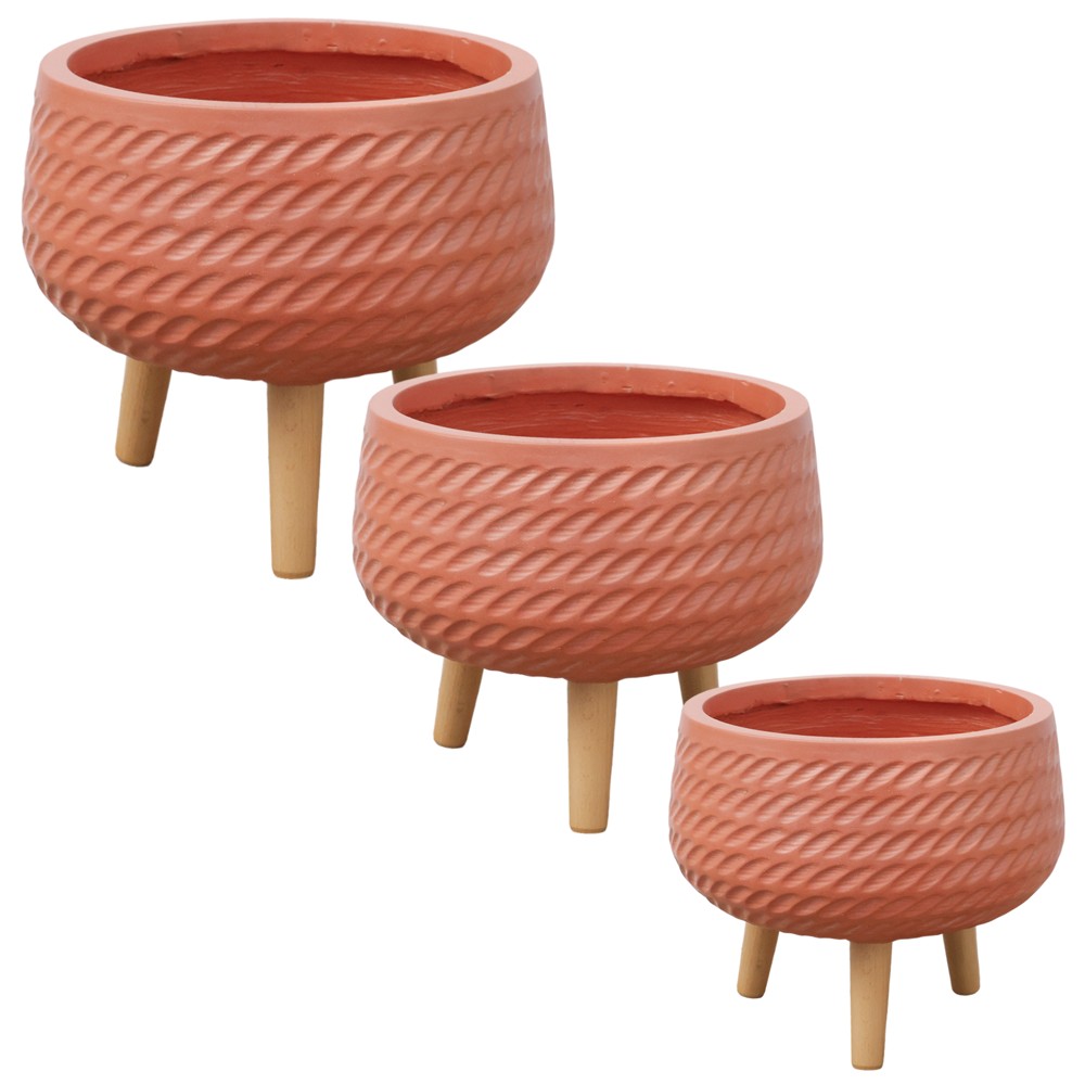 Flower pot, set 3 pieces, fibreclay, terracotta, 24x24x23 cm; 32x32x28 cm; 42x42x32 cm