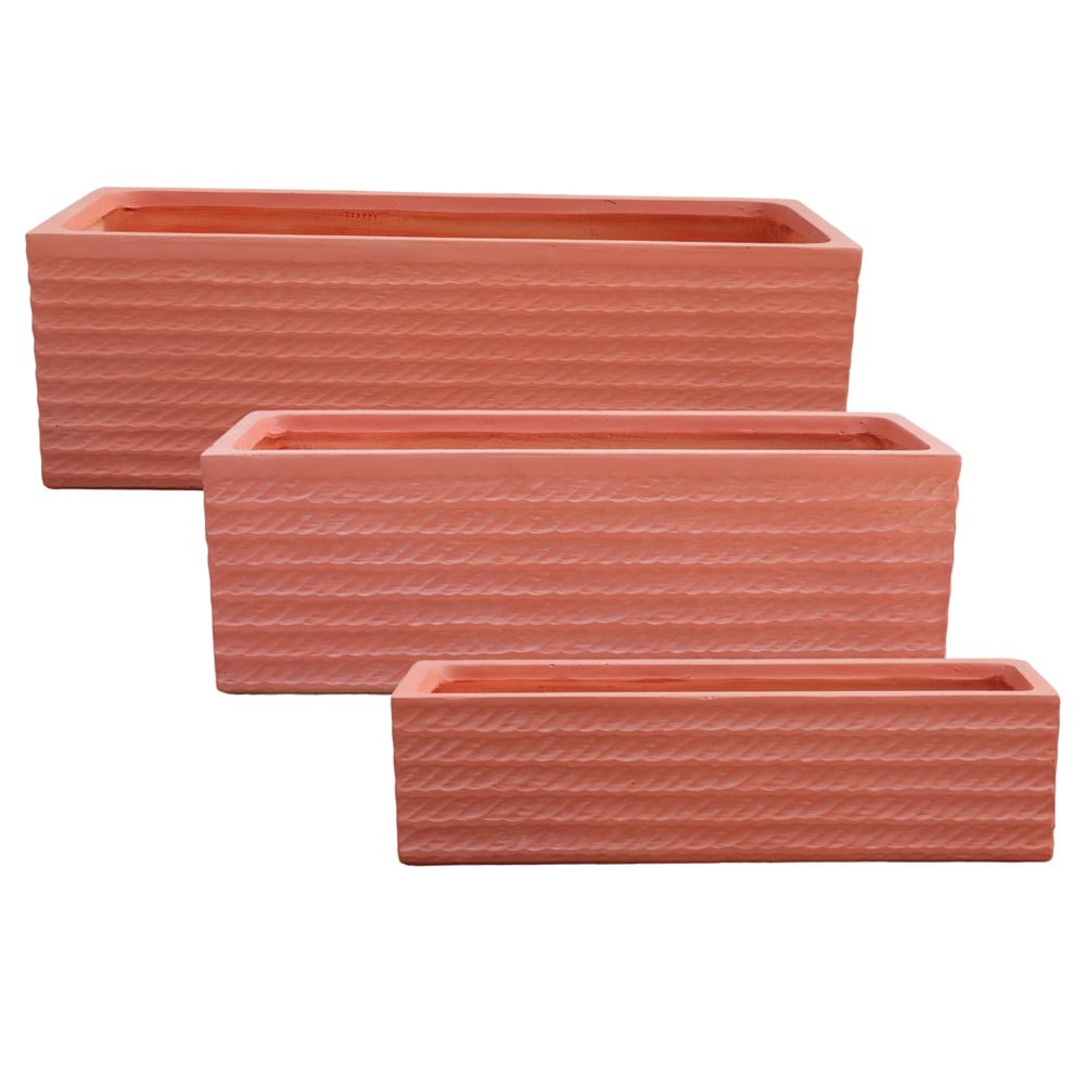 This set of three flower vases is a wonderful piece of decor that will add a sense of modernity and elegance to any setting. The fiberglass/clay creation gives it a sophisticated and soft touch, while the terracotta color makes it stand out and easily match your decorating style. With different dimensions and a modern design, this set will add a special aesthetic touch to your environment.
