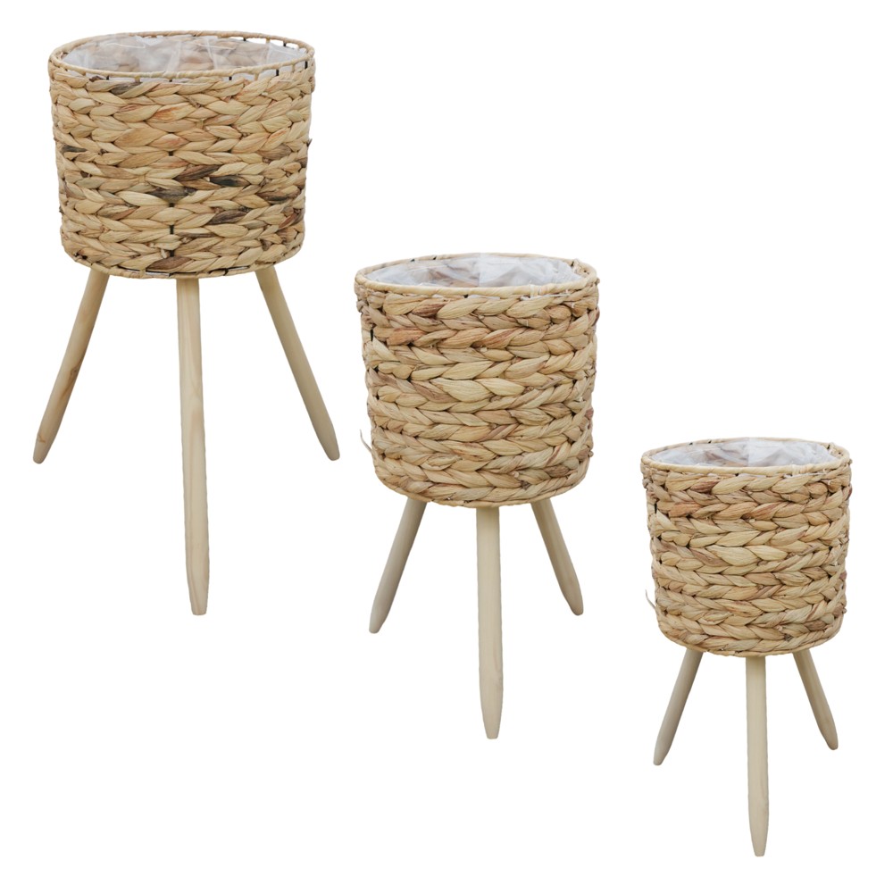 Flower pot, set 3 pieces, straw, natural, 20x18 cm; 25x20 cm; 29x22 cm