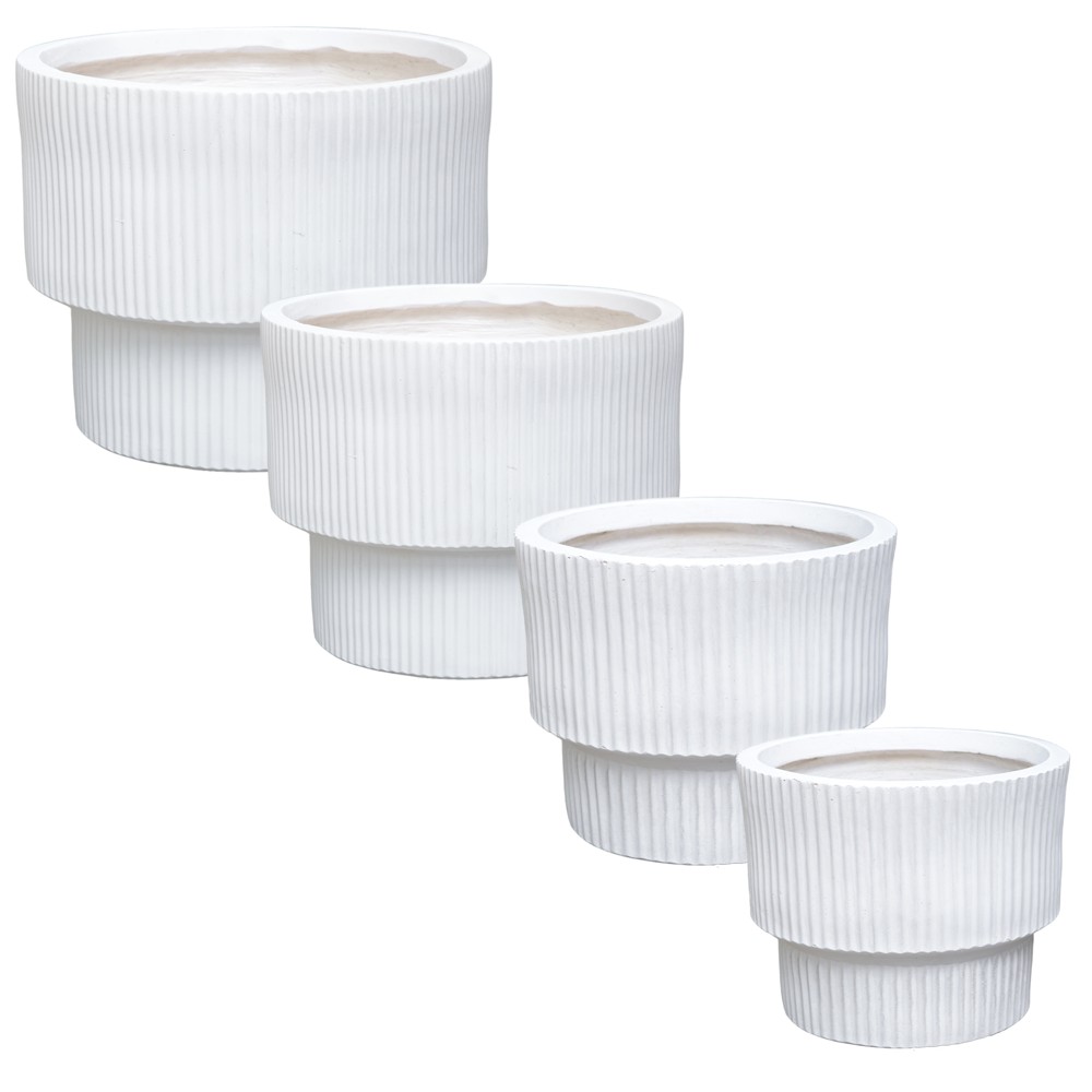 Flower pot, set 4 pieces, fibreclay, white, 24x24x20cm; 30x30x24 cm; 37x37x30 cm; 45x45x37 cm