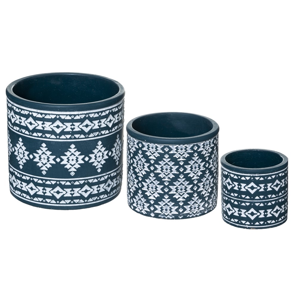 Flower pot, set of 3 pcs, cement/sand, blue, Ø7.7 xH7.6 cm; Ø10.8 xH10 cm; Ø13.8 xH12.8 cm