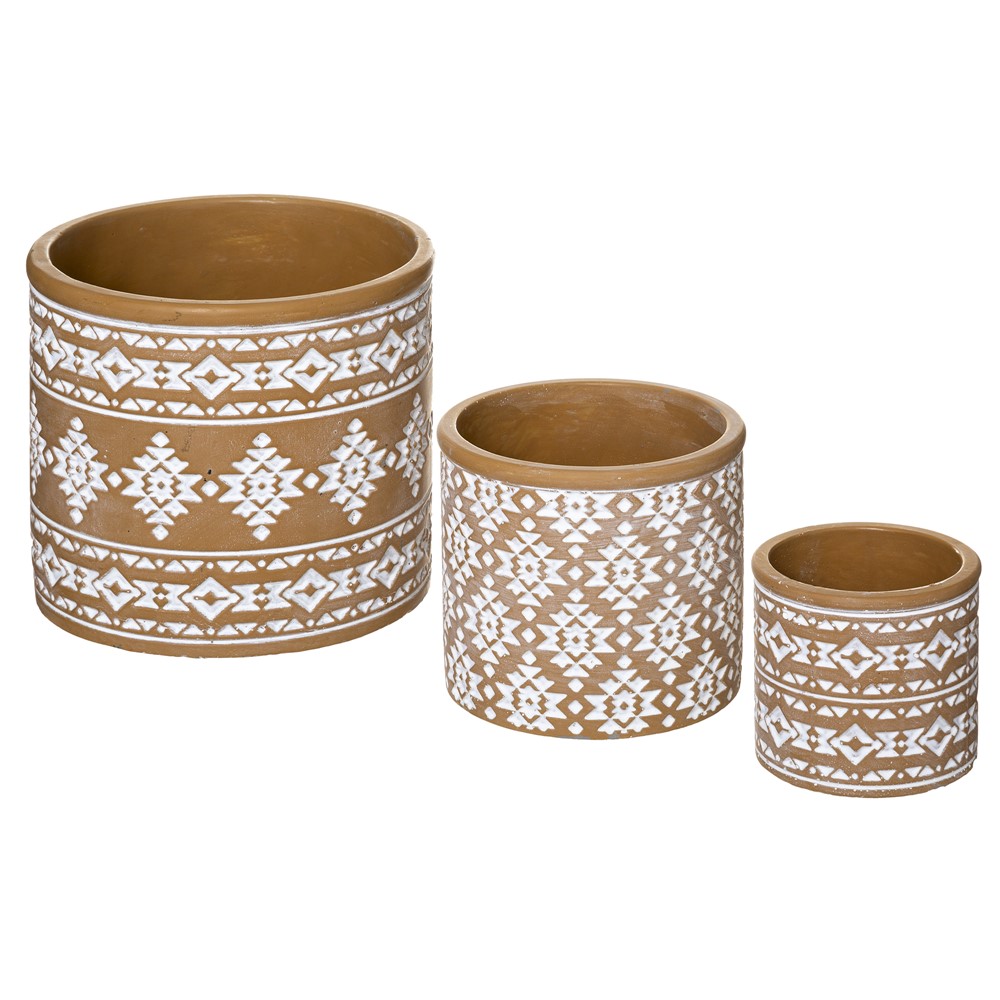 Flower pot, set of 3 pcs, cement/sand, terracotta, Ø7.7 xH7.6 cm; Ø10.8 xH10 cm; Ø13.8 xH12.8 cm