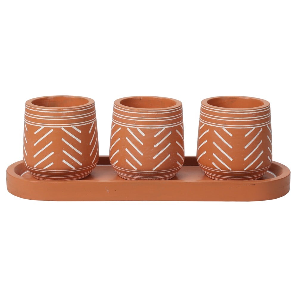 Flower pot with tray, cement, white/terracotta, pot: 8x8xH8 cm, tray: 30x10xH2 cm