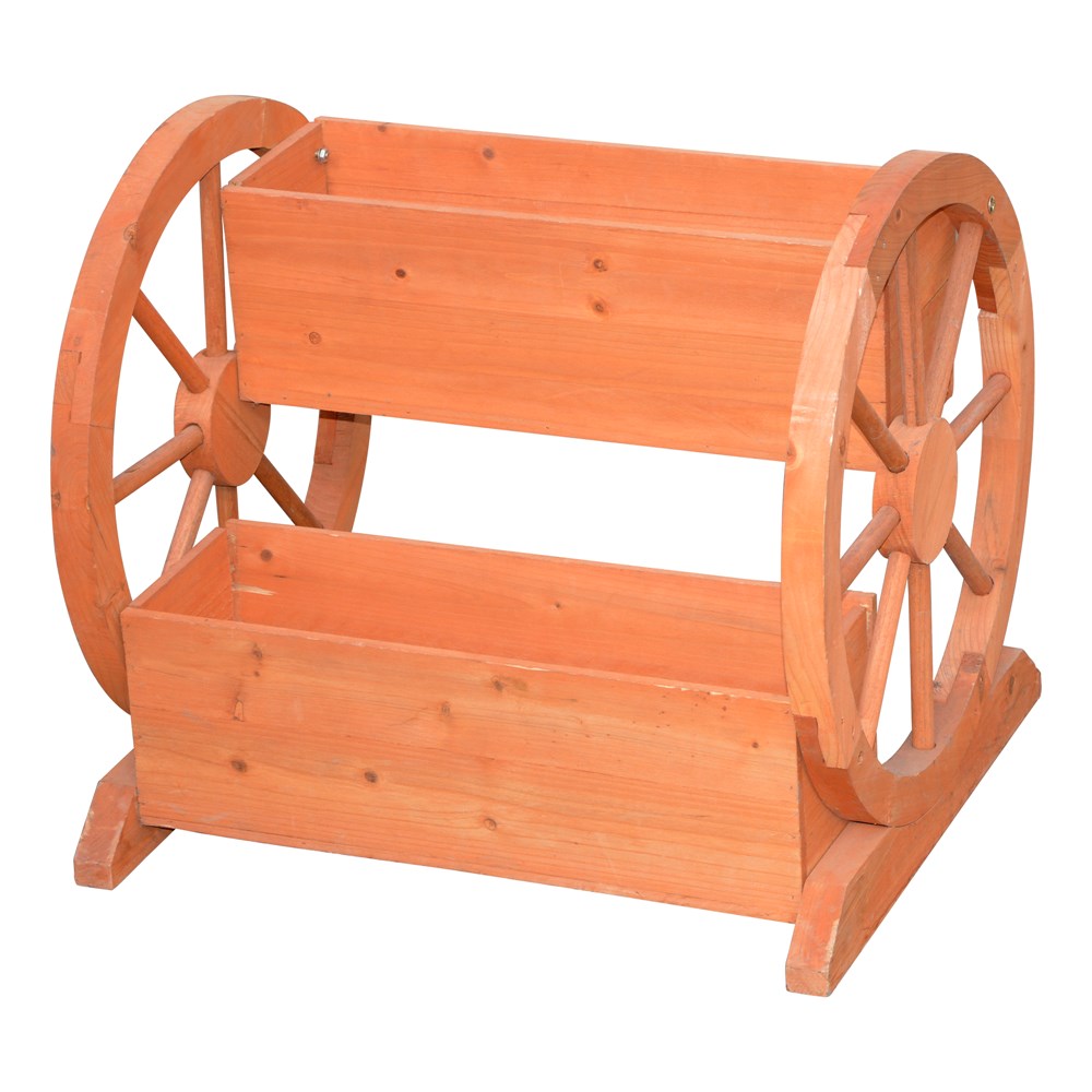 The twin wooden barrel flower pot vase is perfect for any decor, yard or garden. Constructed from 100% natural wood treated against moisture, insects and reinforced with metal rings, this vase is beautiful for many years to come. The stable construction and antique look make this vase without comparable. Give your garden simplicity and a dramatic look with Gardesign collection of products.