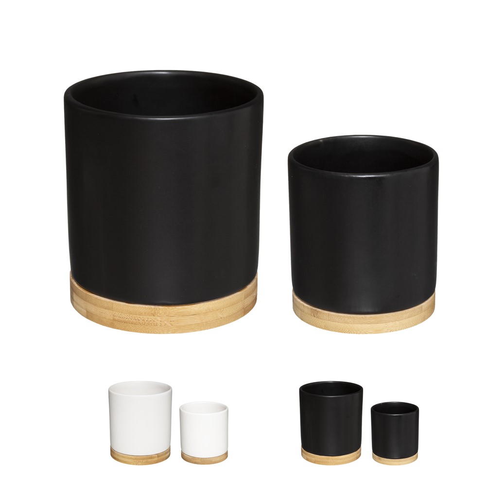 Flower pot(x2), ceramic/bamboo, assorted, Ø10.3xH11.5 cm; Ø13.8xH15.3 cm