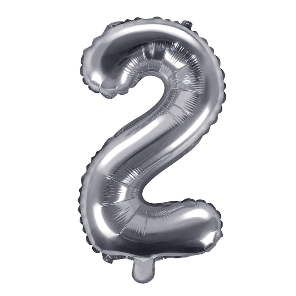 Foil balloon in the shape of the number "2", made of nylon material and coated with refined aluminum, in silver color. It is used for creating various decorations for parties and events and it can be filled with helium gas to make it float or with regular air to make it last longer. This product is suitable for non-professional use, in home environments, and for professional use, by event organizing companies.