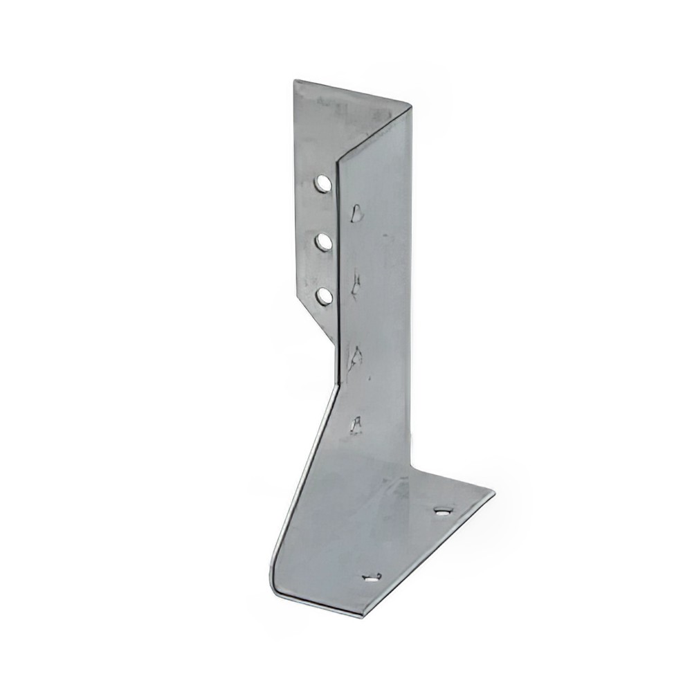 Beam holder for wall corners, made of metal material, with external zinc powder coating, with dimensions 25x105x75x2 mm, in gray color. It is used to facilitate the assembly of wooden elements with each other, ensuring a stable installation of the wood on the base, and can be installed in small spaces near walls and so that it is not visible. The component material is resistant to use, heavy weights, rust or corrosion. It can be easily installed using screws.