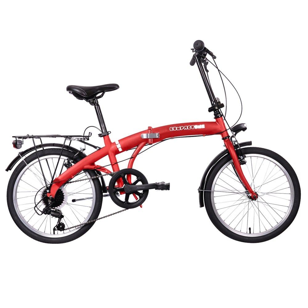 Folding bicycle, universal. Made of durable construction and designed to be used by all body lengths. It enables the quick folding of the body to be transported in urban transport or even a car. With storage bed and fender for protection from dirt. The bicycle is equipped with distinctive signage in the front in the form of LED light and in the rear in the form of a reflector. The Shimano TY-21B transmission enables fast movement on plain roads and safe climbing on mountain roads.