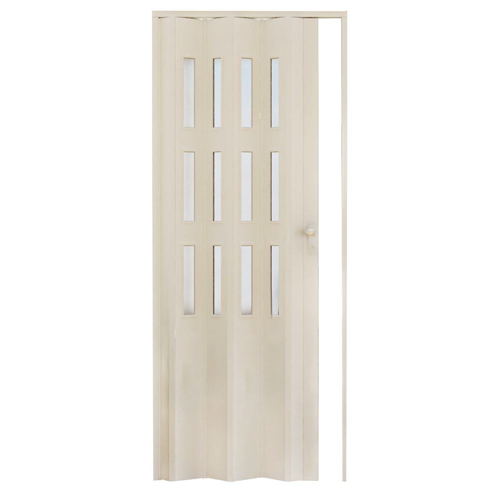 Folding door, PVC, with aluminum lock, 88.5x214 cm, white color with glass