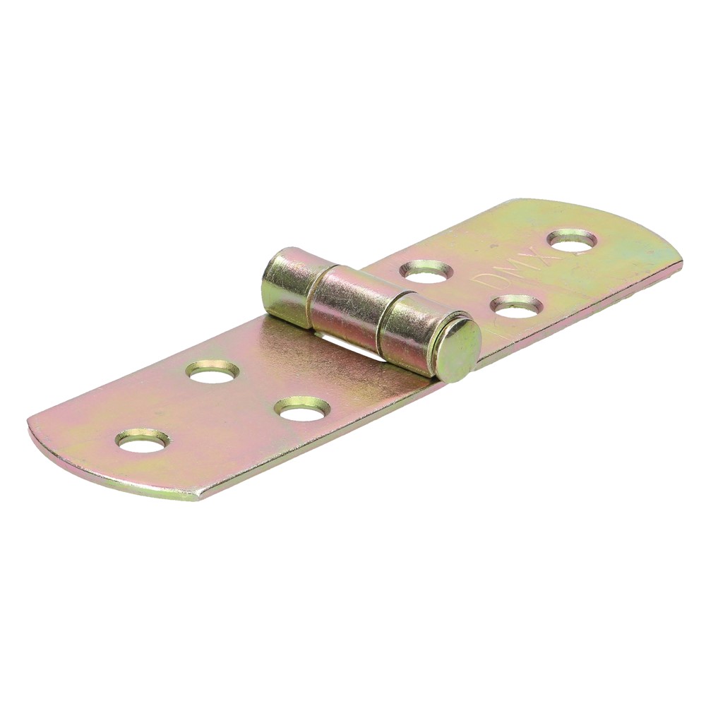 French hinge, made of galvanized zinc material, with dimensions of 12x3.5x0.25 cm, in golden color. The constituent material is resistant to use, heavy weights, rust or abrasion. It can be used for mounting windows, mounting the doors of countertops or shelves, mounting interior doors or for other uses.