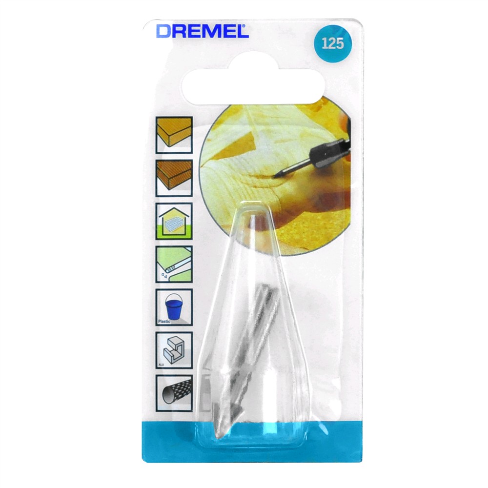 High Speed Cutter conical 6.4 x125 mm. High speed cutters can be used for shaping, hollowing, grooving, slotting, making tappered holes in soft metals, plastics and woods.